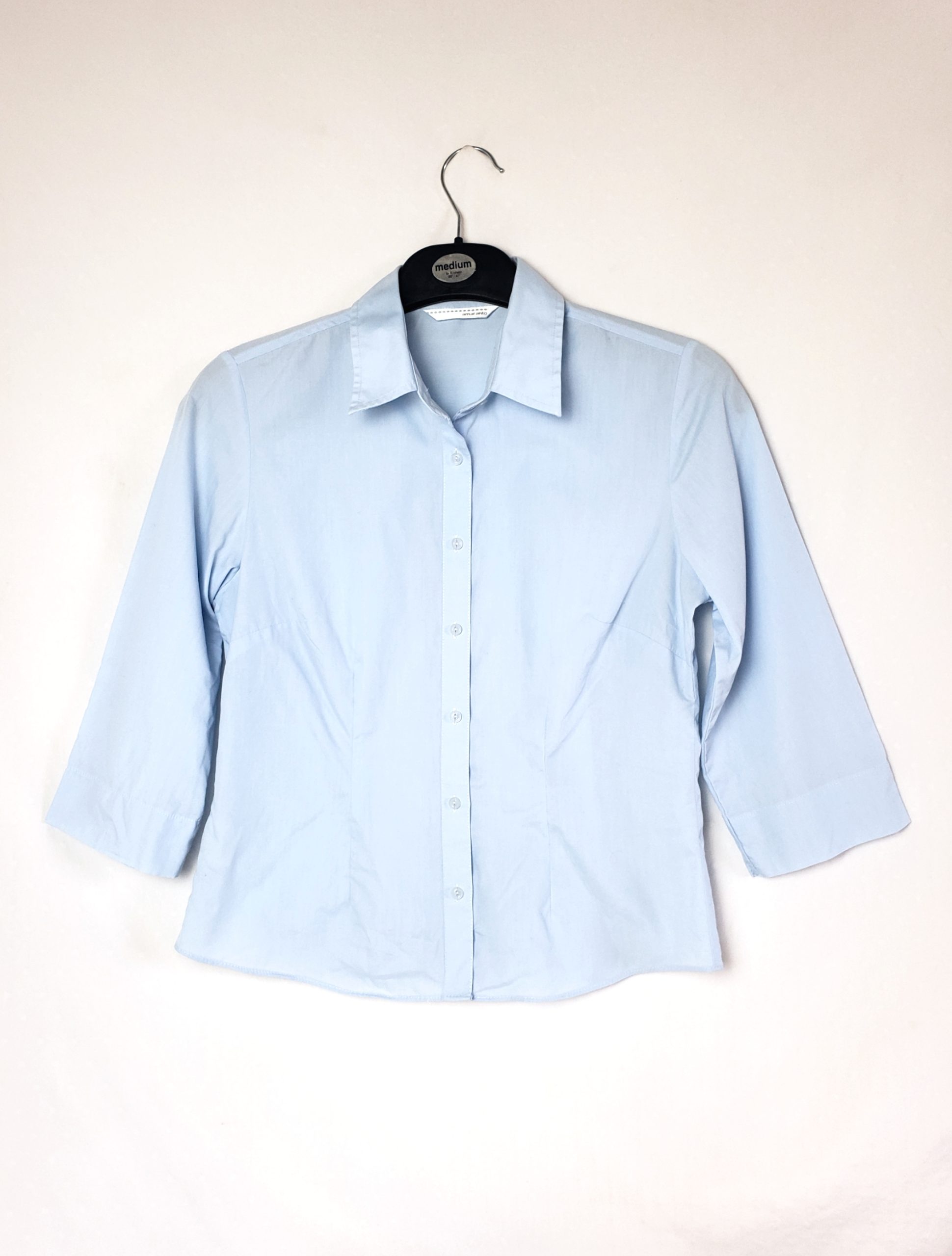 Класична бакитна сорочка жіноча з рукавом 3/4 – вживана в ідеальному стані