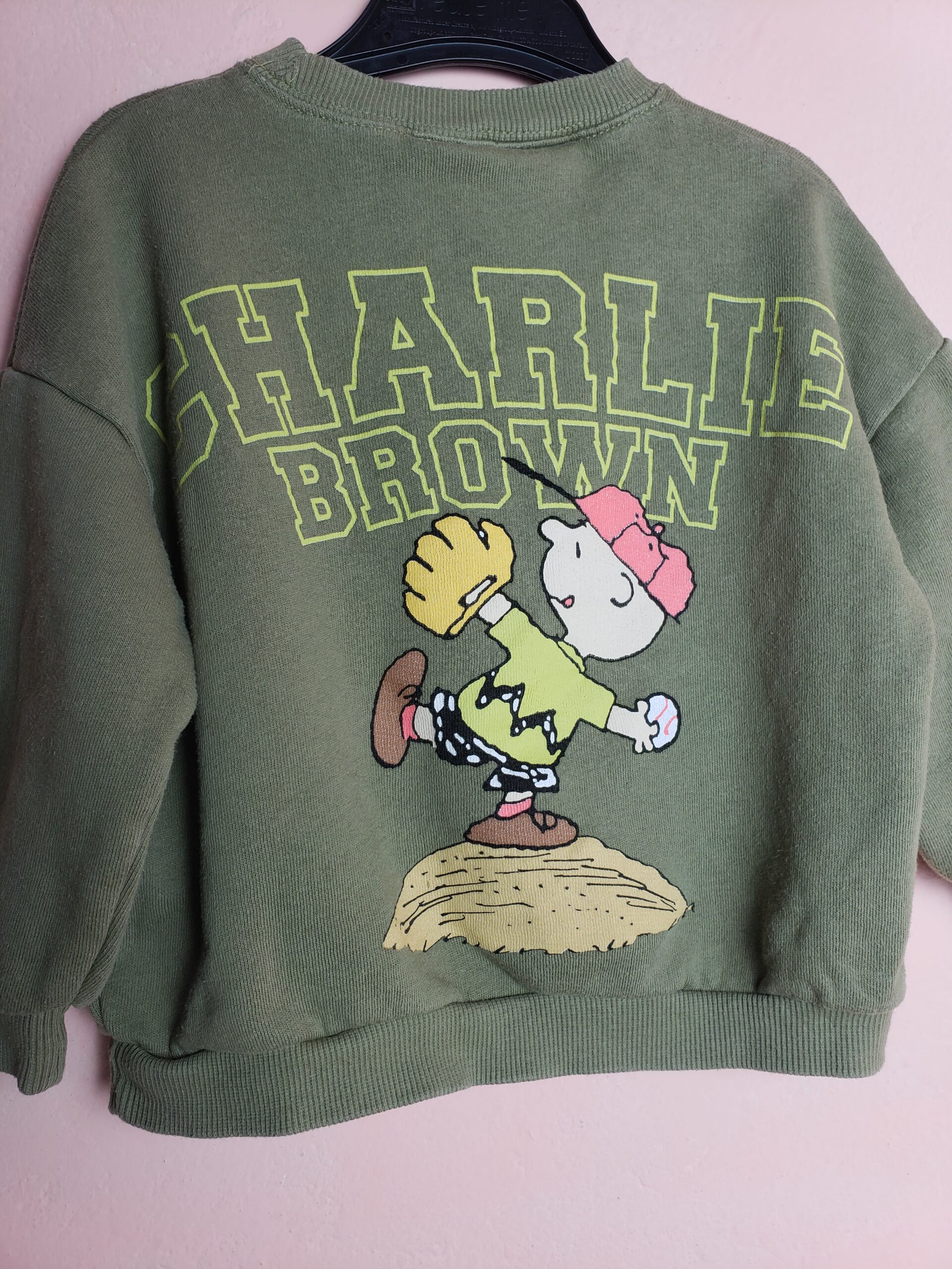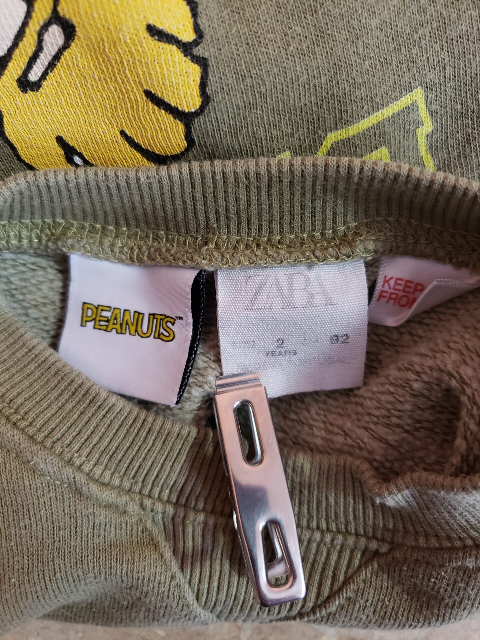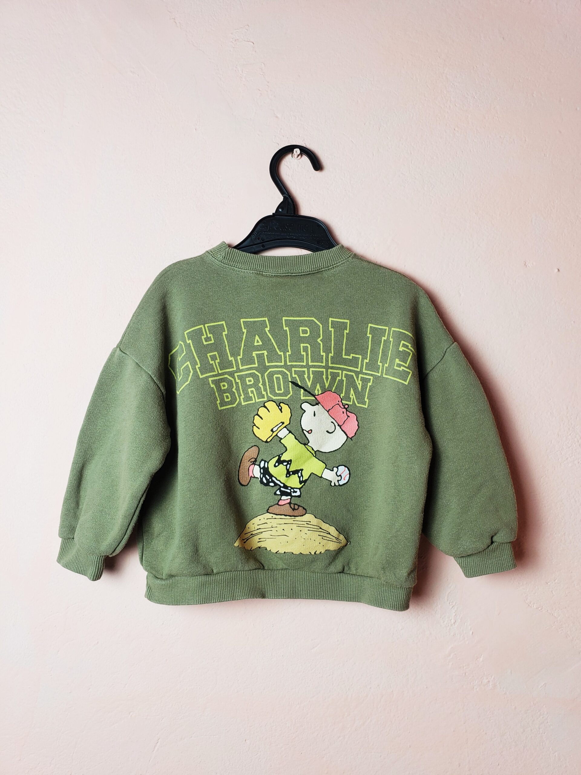 Стильний дитячий світшот ZARA з принтом Peanuts – модний хакі тренд для малюків 2 роки